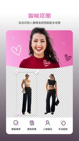 懒人修图了当下热门的穿搭模板,能帮助用户让穿搭风格变得更有意思。通过简单几步操作,就能让自己的穿搭摆脱平庸,凸显独特个性。这款修图工具不仅功能全面,而且上手难度低,即使没有专业设计基础,用户也能轻松完成修图操作。它运用智能抠物技术,可自动识别图片中的物品,实现抠图与背景替换的全自动化流程。用户只需点击一次,就能快速将目标物品从原图中分离,并更换成新的背景,整个过程十分方便快捷。