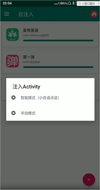 选择完毕点击确定后,系统会自动从服务器动态获取DEX文件,用户只需点击屏幕上的智能模式选项即可。