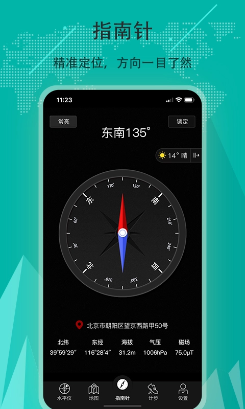 地图指南针软件是一款功能全面的导航应用,专为需要精准定位和方向感的用户设计。它不仅支持传统的指南针功能,还引入了先进的AR技术,让用户在使用时能更直观地获取方位信息。软件的罗盘功能,可帮助用户在复杂环境中快速找到方向。获取实时位置信息,了解周边地理环境和路况,大幅提升了出行的便利性与安全性。
