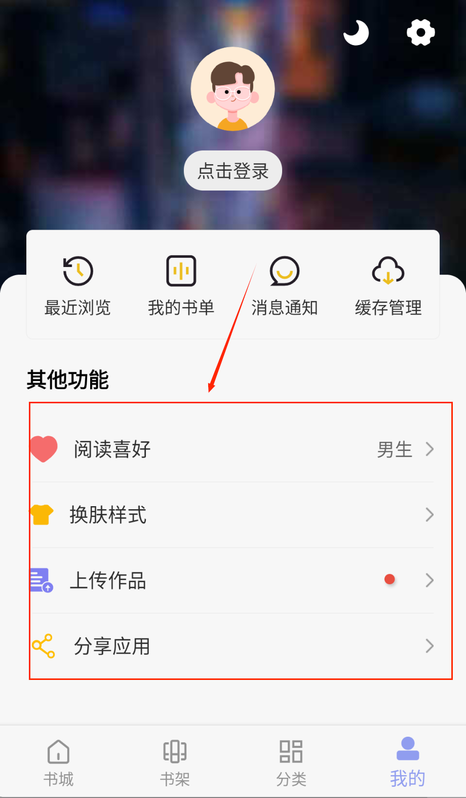 个人中心支持账号信息与阅读设置的管理,在“我的”页面中,用户可以查看自己的阅读历史,对昵称和头像进行修改,并且能够清理缓存以释放手机存储空间。