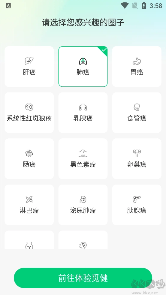 答:您可以在“圈子”页面,搜索自己所患的病种(像肺癌、乳腺癌之类),点击进入相应页面后,选择“加入”选项,这样就能参与话题讨论,也能查看经验分享内容啦。