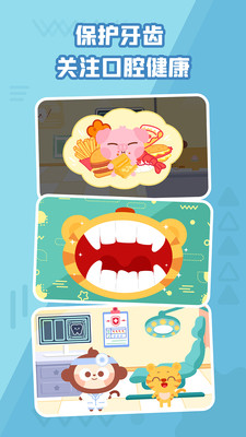 《多多小牙医》能助力宝宝养成良好的牙齿护理习惯。在这里,宝宝可以化身专业牙医,为角色检查牙齿;通过角色扮演模式,还能体验不同的牙科治疗场景,甚至扮演各类专业的牙医动物,到牙医诊所为其他动物检查牙齿。宝宝可以挑选小动物进行诊治,记录它们牙齿的损伤情况,再运用治疗工具为小动物们开展治疗。