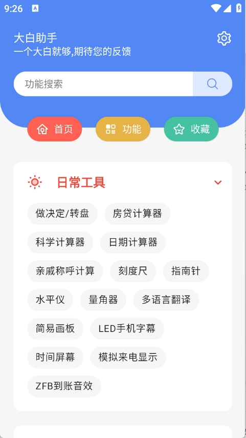 大白助手,是一款便捷的手机工具箱,内含丰富资源,涵盖计算器、日历、天气等多种实用工具。所有工具均支持即点即用,无需复杂操作;详细的工具分类设计,能帮助用户快速定位所需功能。此外,我们还会持续更新工具库,以满足不同用户的多样化使用需求。