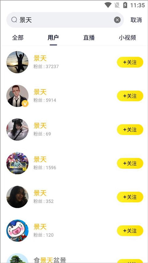 也可以在主页的搜索框中输入好友昵称的关键词,然后选择用户列表,点击关注按钮。