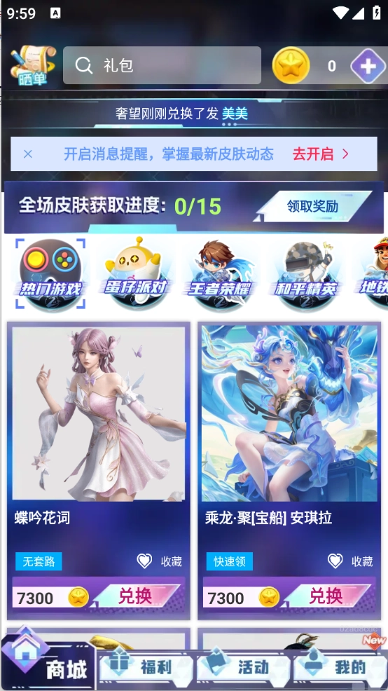 还在为购买游戏皮肤花费金钱吗?有了皮皮快兑,你只需完成平台提供的任务,就能快速兑换到心仪的皮肤资源,涵盖王者荣耀、和平精英、蛋仔派对等多款热门游戏;也可以通过关键词搜索功能找到想要的游戏皮肤,是你随时掌握皮肤更新动态的贴心平台。