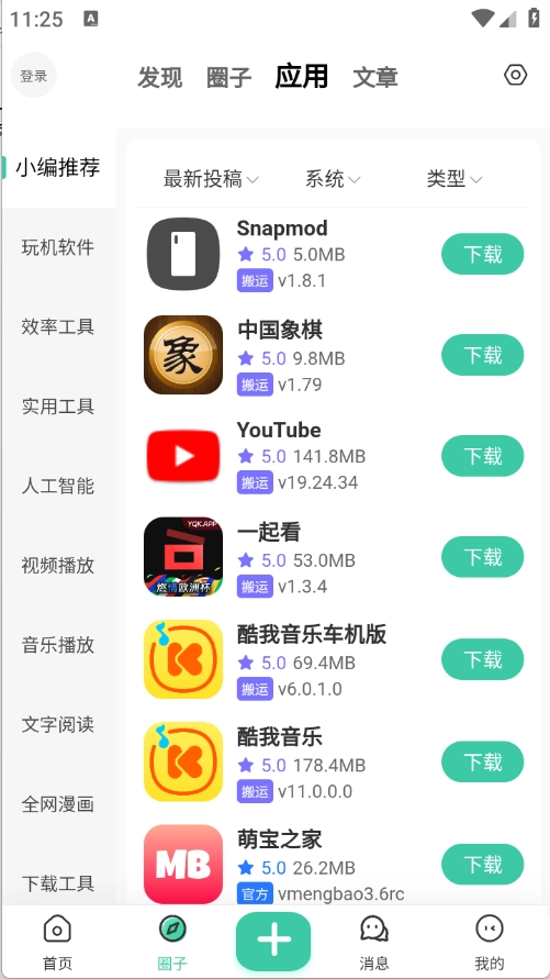 这里有丰富的应用资源,涵盖音乐、影视和游戏等多种类型,直接点击就能使用。