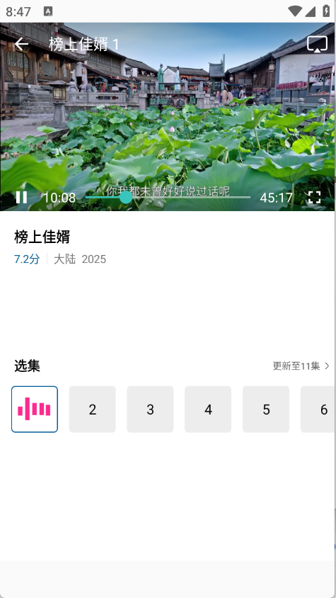 点开想看的影视资源以后,选择集数即可观看。