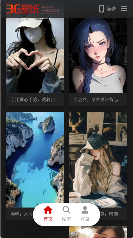 进入首页之后可以看到很多的壁纸资源。