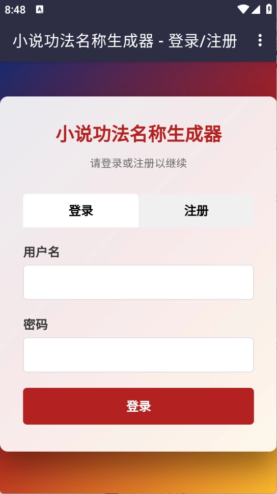 用户首先要使用3G游戏网的小说功法名称生成器,而首次使用该生成器时需要注册并登录账号。