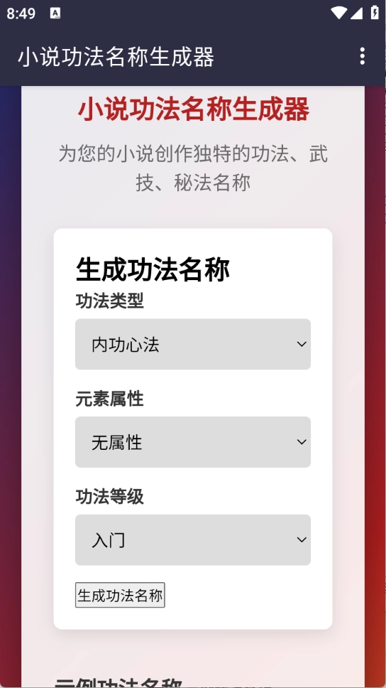 小说功法名称生成器亮点