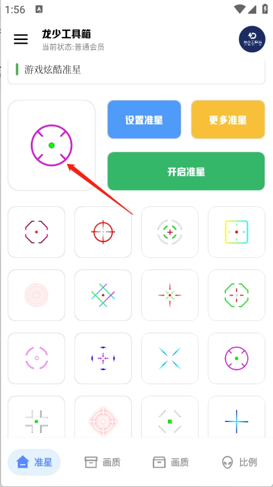 进入龙少工具箱软件,下面包含了很多的准星样式。