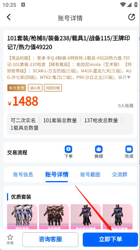 可以依据自身需求挑选不同类型的账号,像带有稀有皮肤、全套武器的账号都可供选择。