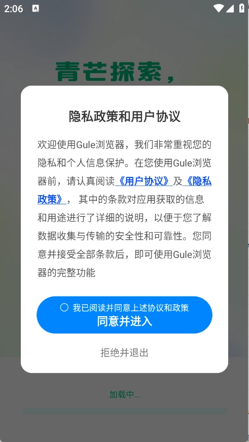 用户首先需要在3G游戏网的Gule浏览器中,查看并同意隐私政策以及用户协议。