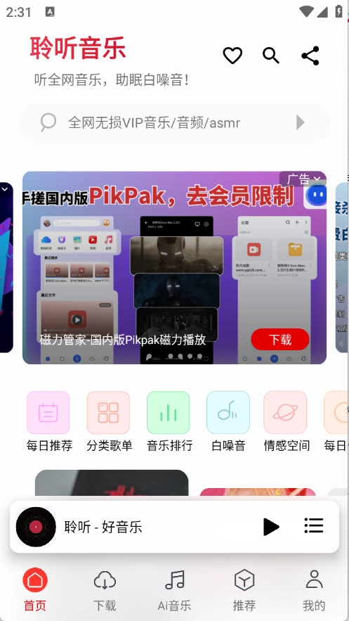 在主界面能看到不少推荐的音乐,找起音乐来更轻松了。