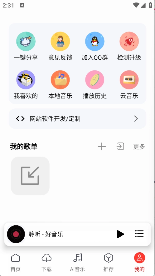 “我的”板块集成了诸多实用功能,像一键分享、检查更新之类都包含在内。