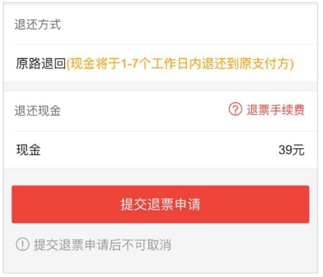 确定退票信息后,点击“提交退票申请”。