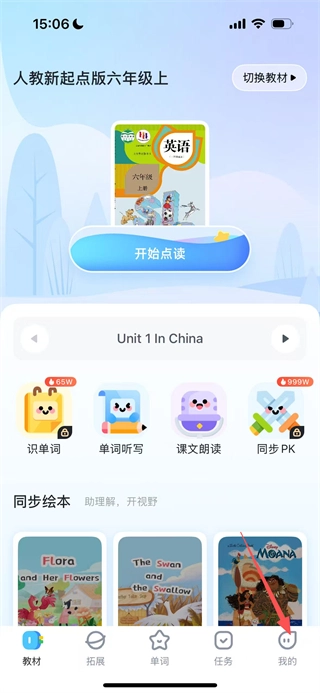 在E听说小学的首页,找到右下角的“我的”选项并点击,就能进入个人页面啦。