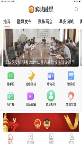作为滨城官方认证的移动政务媒体平台,各类实用功能应有尽有,不管是视频点播、互动交流,还是热点头条资讯,在这里都能满足你的需求。