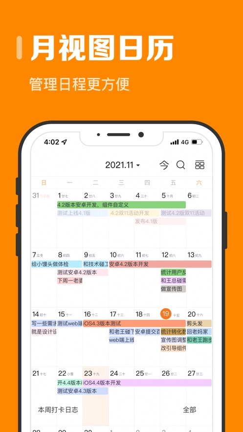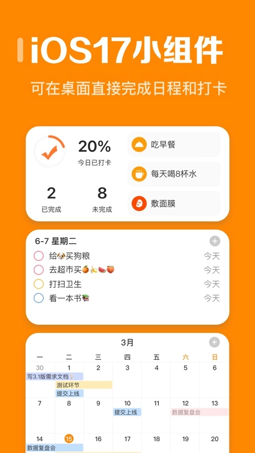 记事——记录日程清单,不让每件事都被错过 视图——所有近期记事的周视图、月视图,清晰直观