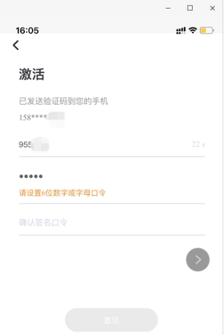 点击【我的印章】,首次使用该功能的用户需要先激活数字证书。系统会依据登录用户已绑定的手机号自动发送短信验证码,此验证码在5分钟内有效。输入验证码后,还需设置证书验证密码。