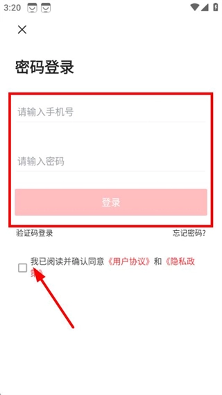 在密码登录的界面上,输入相关信息,勾选对应的协议后点击登录按钮,即可完成账号的登录操作。