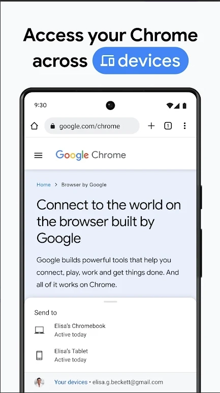在多台设备间同步Chrome。当您登录Chrome后,您的书签、密码与设置会自动在所有设备间保持同步。您能在手机、平板电脑或笔记本电脑上无缝获取自己的全部信息。