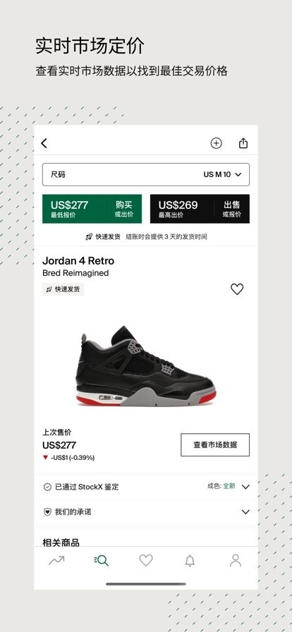 StockX 是发现、购买和销售经过验证的运动鞋、电子产品、街头服饰、收藏品、手表及手袋的最安全且快捷的途径。