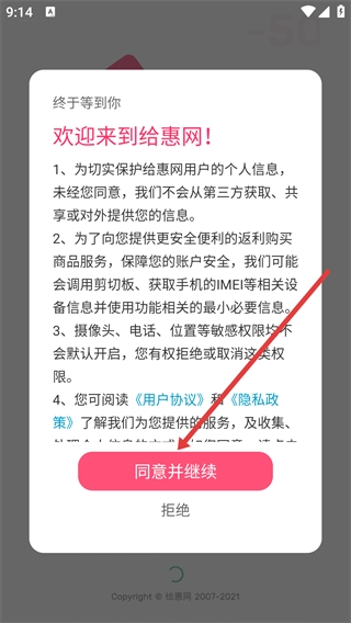 在使用给惠网之前,您需要仔细阅读《用户协议》与《隐私政策》,只有点击“同意并继续”按钮后,才能进入软件使用相关功能。