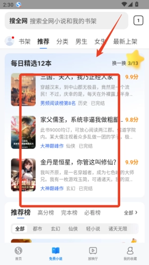 打开搜狗浏览器极速版后,首页会呈现热门小说与视频的推荐内容,点击相应内容就能免费进行阅读或观看,此外还可以通过底部导航栏来切换不同的内容板块。