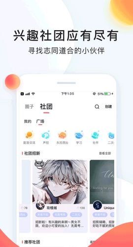 进入软件后,先点击“社区”进入社团界面,再点击右上角的“创建”按钮。