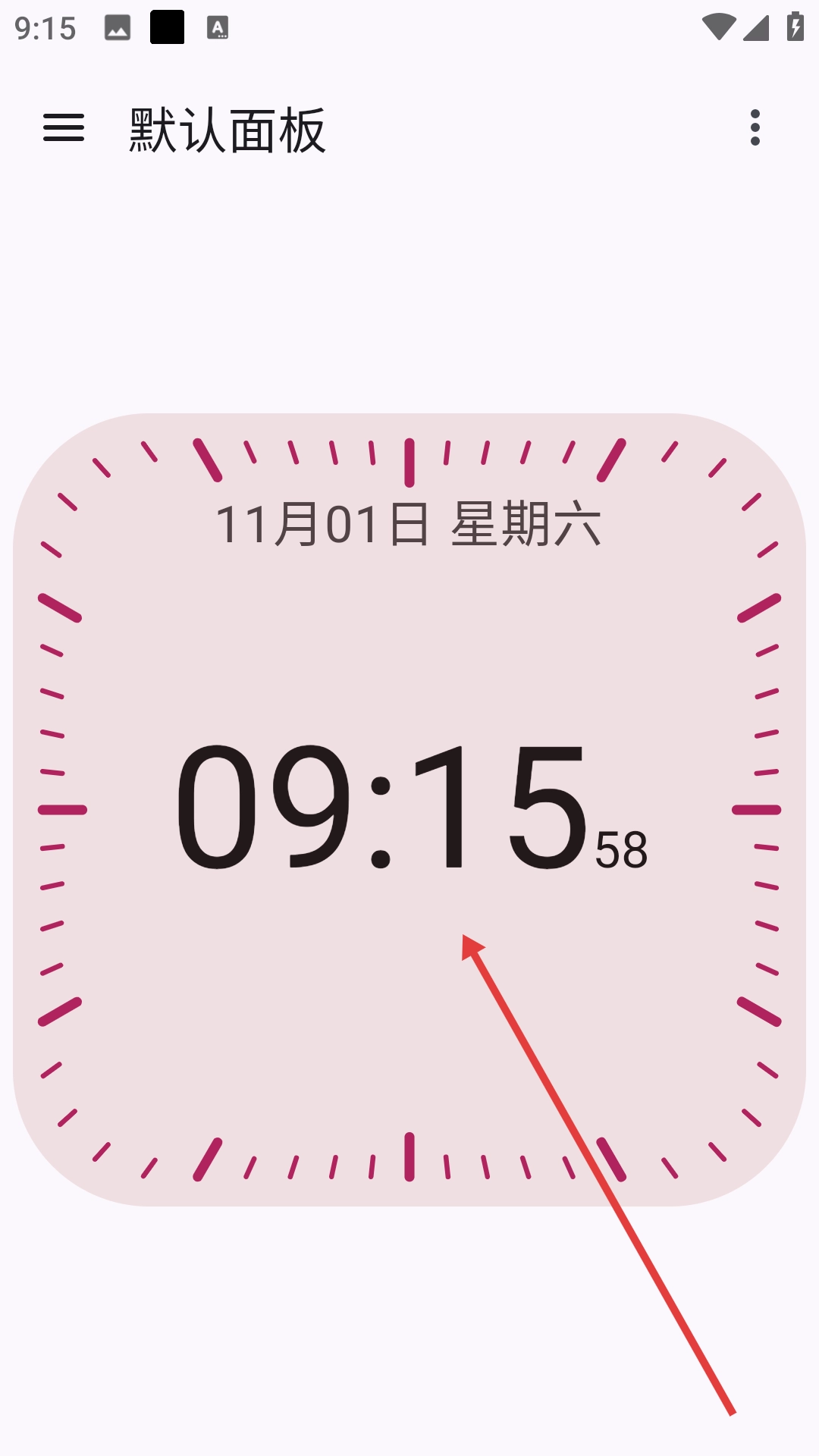 添加时钟后,默认面板会呈现出包含日期与时间的时钟界面,例如11月01日星期六09:15这样的显示形式。