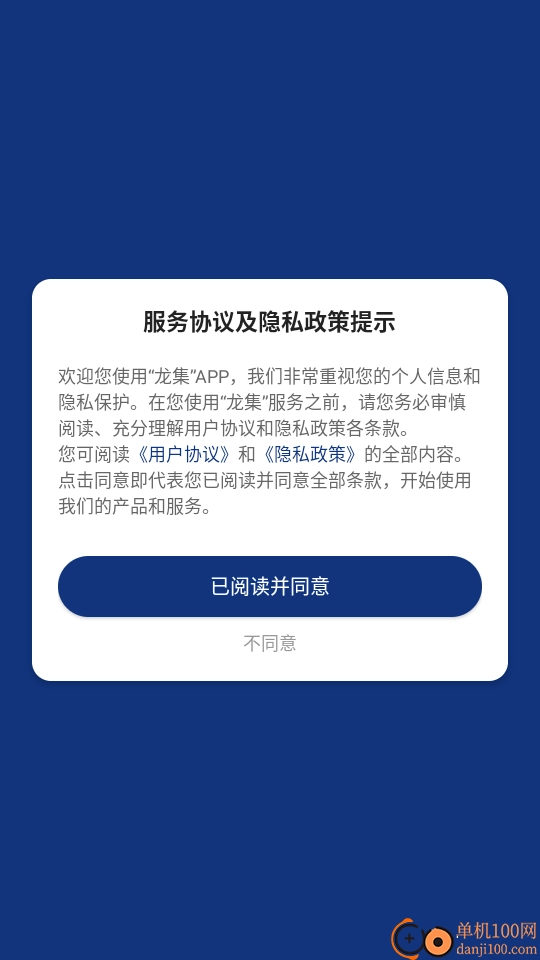 打开软件后阅读“服务协议及隐私政策提示”,点击“已阅读并同意”按钮即可进入。