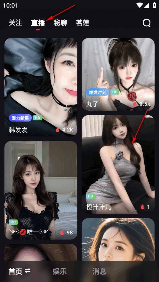 点击【直播】,选择一个喜欢的主播