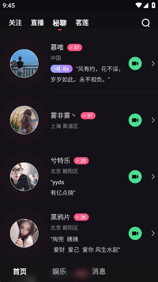 菲柠正版,《菲柠》是一款主打真实、轻松、高品质社交体验的聊天交友互动平台。这里汇聚了大量真实在线用户,用户可以自主选择心仪的对象展开交流,支持一对一私密聊天;同时,平台还提供丰富的才艺主播精彩视频内容,用户也能与其他在线好友共同探讨感兴趣的话题。
