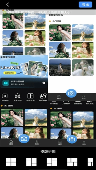 一键拼图:具备多张照片智能拼接的功能,能让你把不同照片组合起来,打造出别具一格的视觉呈现。这里的拼图模板十分丰富,可充分满足你各种创意上的需求。