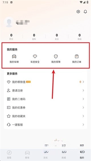 登录后回到“我的”页面,就能看到我的车辆、车控安全、我的保障以及订单等服务入口。