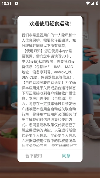 在本站完成轻食运动的安装后打开应用,点击“同意”按钮,即可进入软件的登录界面。