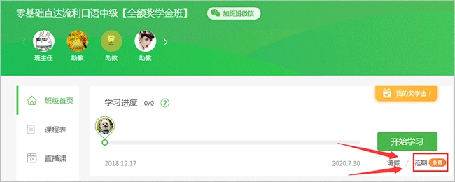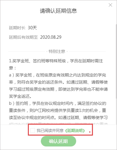 不同课程的延期次数与延期方式存在差异,具体情况请以进入班级后点击延期时显示的内容为准。