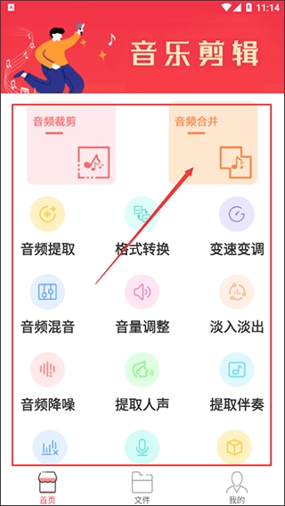 打开应用主界面后,能看到音频裁剪、合并、提取、格式转换、变速变调等多个功能模块,选择所需功能就能开始操作。下面以音频合成功能为例进行说明。