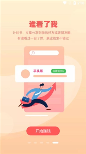 如图所示,划至最右侧,点击下方的开始赚钱按钮