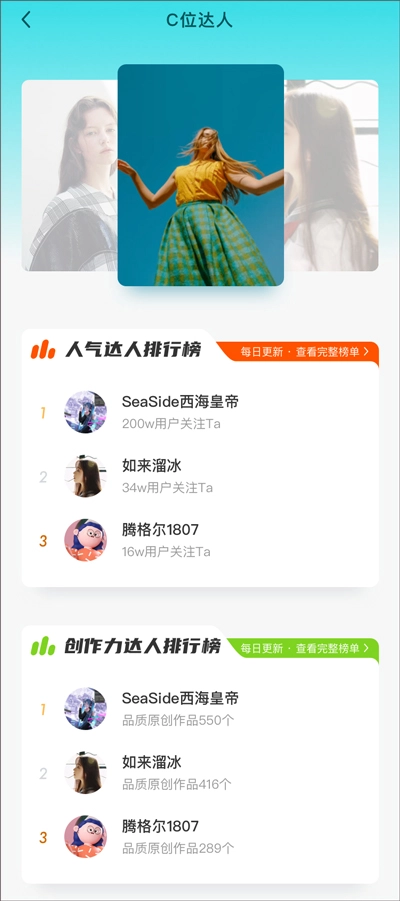 达人圈:这里有实时更新的优质动态推荐,包含酷炫、趣味、搞笑等各类风格,能满足大家不同的喜好。