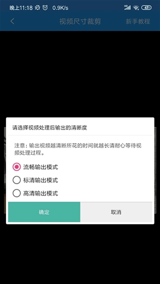 新版会弹出清晰度选择界面,建议依据设备性能挑选合适的清晰度,清晰度越高,对应的处理时长也会越长。