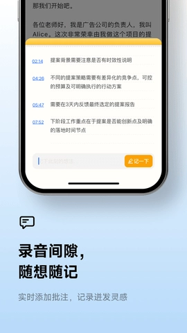讯飞听见对老师和学生而言,能助力记录课堂内容,完成翻译与整理工作,不必顾虑语言方面的阻碍。对于职场人士来说,不管何时何地都能借助录音来留存灵感,迅速将其转化为文字,从而提升写作的效率。在办公会议以及商务洽谈的场合中,只需一键录音,就能轻松地记录下会议内容,还能快速把录音转换成文字形式的会议纪要,并且方便快捷地进行分享。