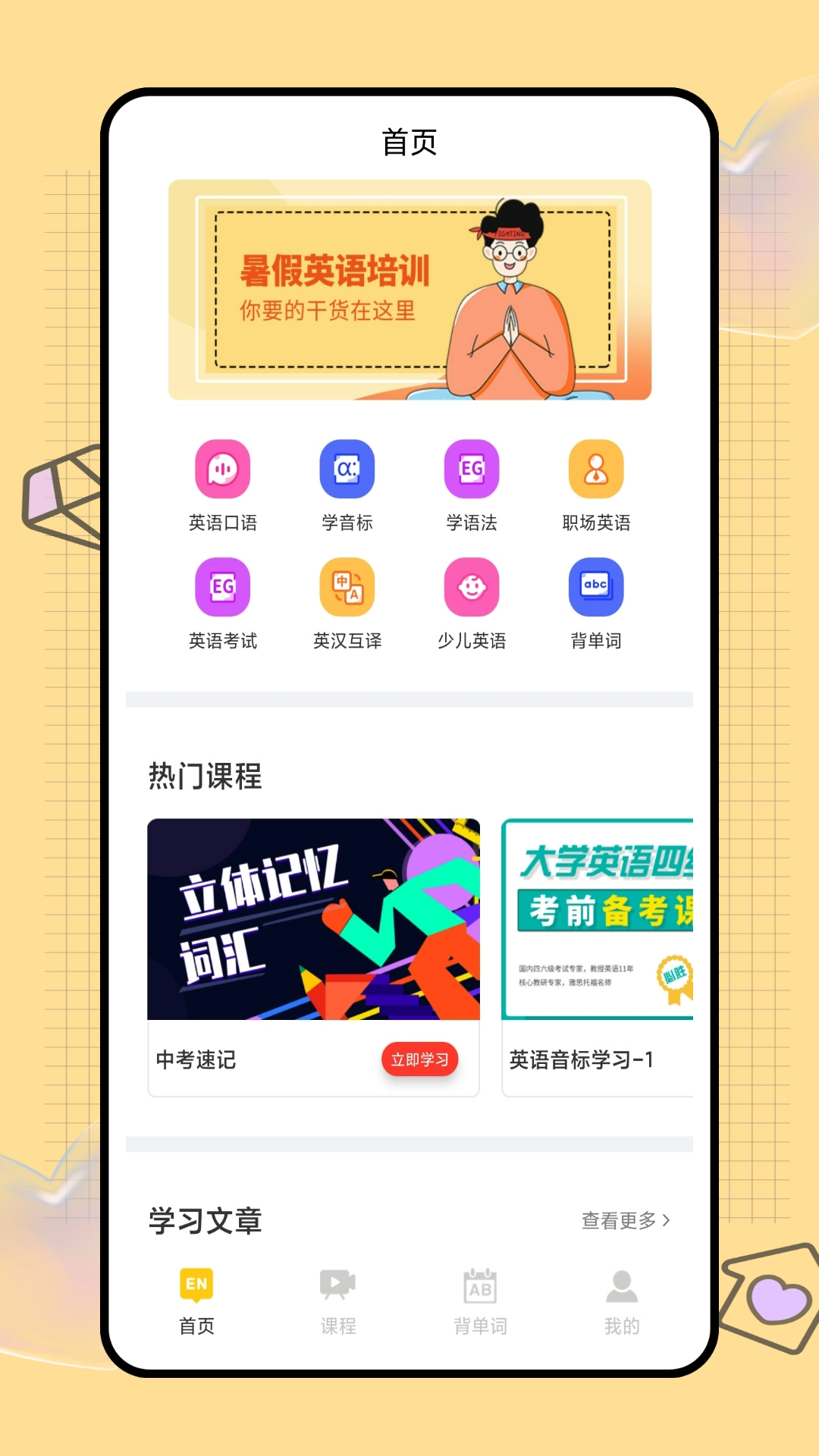 软件的核心功能包含完善的课程体系,覆盖听、说、读、写四大维度,助力用户全方位增强语言素养。借助发音训练模块,开展反复实操,提高口语输出的流畅度与精准度。配备即时的口音及语调反馈机制,协助用户察觉并修正发音里的不足。词汇积累训练通过多样化题型,帮助用户在真实语境中运用已学内容。量身定制的学习规划,让每个用户都能依照自身节奏推进学习,保障学习成效的最优化。