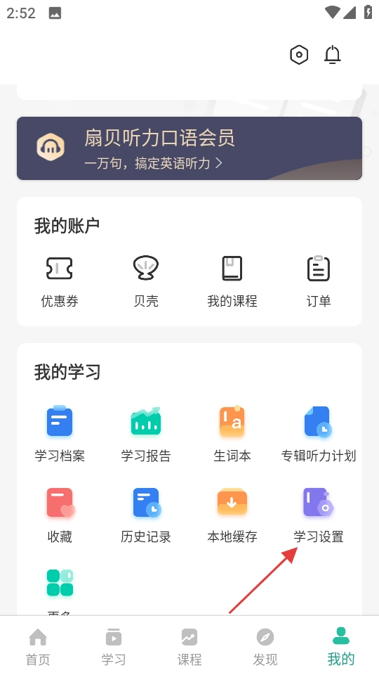2. 于个人页面处,点击“学习设置”选项,从而进入学习设置页面。