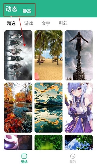 用户进入软件后,可先点击上方的“动态”选项,接着在下方的壁纸板块里挑选一款自己心仪的壁纸并点击。