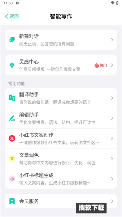 智能写作涵盖小红书文案创作,还提供翻译、文案撰写、文案修改、小说创作等多种智能写作功能。