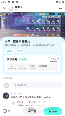 按照您的需求选好一款游戏账号后,点击“我想共”按钮,就可以开启游戏啦。
