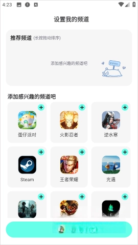 首次使用时,可以自定义设置您感兴趣的游戏频道。
