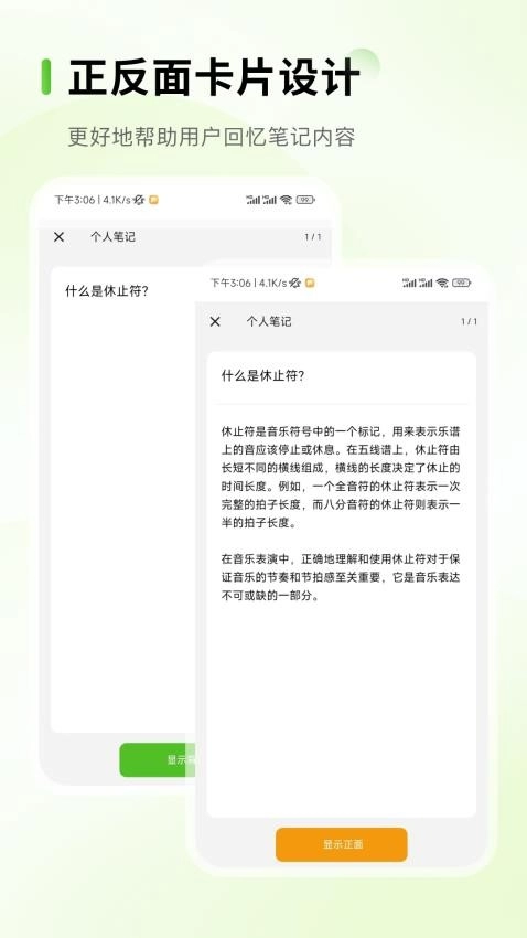 可借助正反面记录的形式,有效帮助用户更便捷地回忆笔记内容。